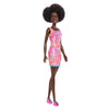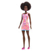 - Each wears a dress with a unique silhouette, color scheme and an allover Barbie logo print.