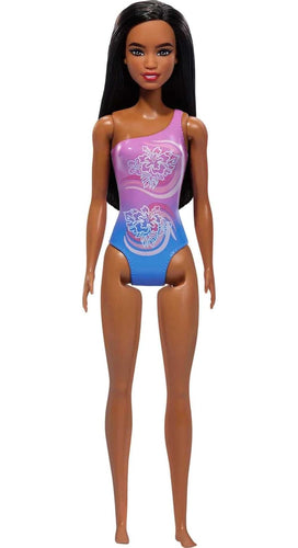 Let your child dive into sunny adventures with the stylish Barbie Beach Doll. Dressed in a vibrant tropical purple swimsuit, this Barbie is ready for beach days, pool parties, and endless storytelling fun.