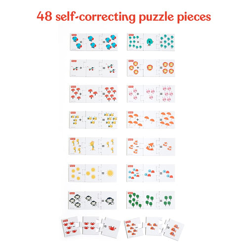 Product includes 48 pieces - 16 sets of 3 pieces each that teach different shapes. Thick, durable pieces makes products easy to grab and use. These puzzles are also a great way of improving hand-eye coordination and increasing visual awareness