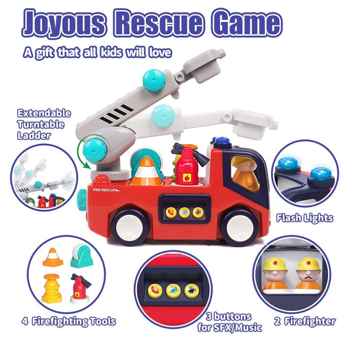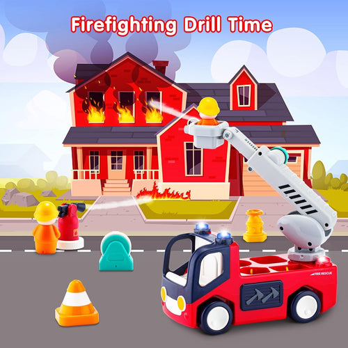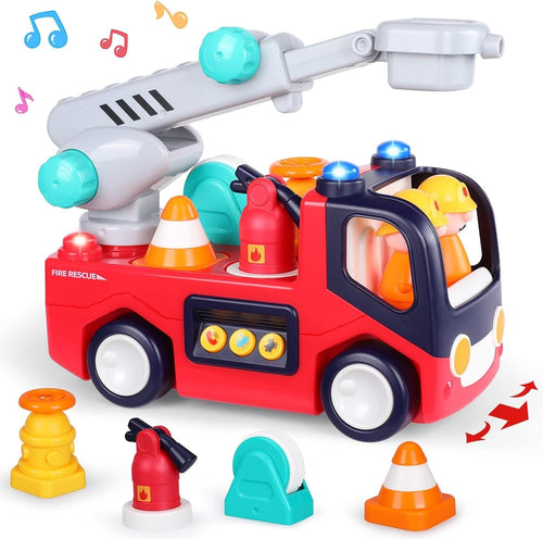 Hola Early Learning Fire Engine Toy with Captivating Lights and Sound Effects | 360° Rotating Universal Wheel Bump and Go Toy for Toddlers 18+ Months