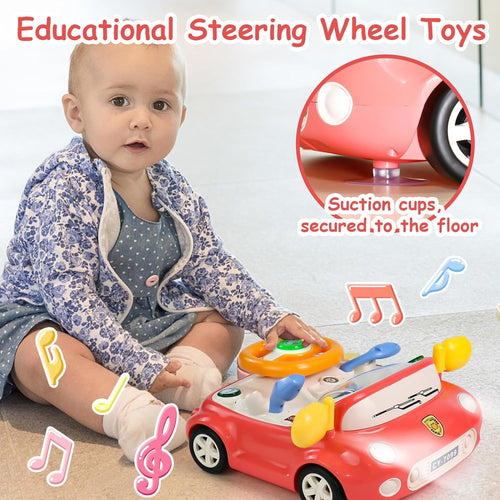 This multi-functional simulation steering wheel toy is a must have for kids life skills training and provides a fun and educational experience. With a rotatable suction cup on the bottom, the toy is easy to absorb and convenient to use when riding in the car and provide entertainment. This toy is perfect for kids of all ages who love cars and want to simulate their driving movements. Whether you are riding for a long time or at home, this simulation handle toy is a great way to develop your child's motor driving skills, sensory, imagination and movement. The various sound and lighting functions of this toy simulate the real car driving experience, promote the sensation, reaction and imagination.