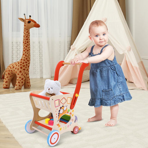 Knick Knack Wooden Baby Walker Push Toy for Toddlers | Activity Push Trolley with Wheels | Educational Walking Support & Learning Toy for Kids Boys Girls 1–3 Years