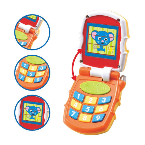 SYMPONIC Phone is a proposal for the youngest children it is intended for children from 6 months of age. Made of high-quality plastic, the phone will meet the requirements of every child. Children love to play with many things that adults use every day. This music phone has many great features. Each time you open the flip, the phone will welcome you with a melody or the word “hello” and show one of three characters – a dog, a kitten or a mouse. Each of the numeric keys has an audio function, a key with a note activates the bell or one of the four available melodies.