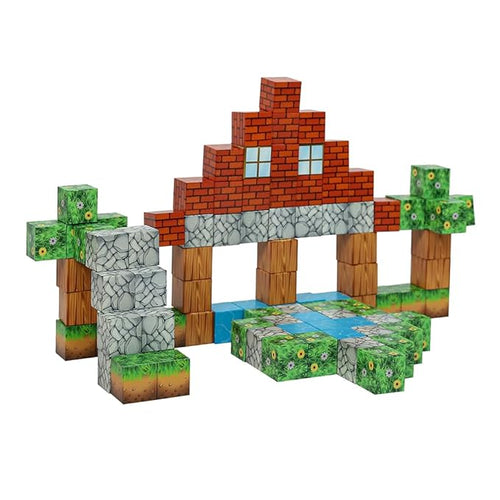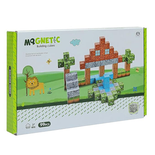 A fun and creative set of 99 Magnetic Building Cubes designed with pixel-style grass, stone, and water textures. Kids can build houses, trees, bridges, and their own mini worlds. Perfect for children aged 3+ to improve creativity, focus, and problem-solving.