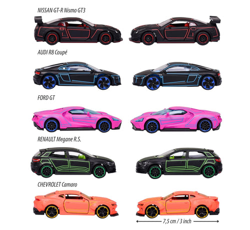 Majorette Light Racer Giftset With Different Die Cast Metal Vehicles, Age 3+, Set Of 5, Multicolor