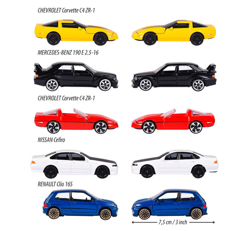 Majorette Pack of 5 Metal Cars Young '90, Scale 1:64, 7.5 cm, Classic Edition 90s, Age 3 Years+