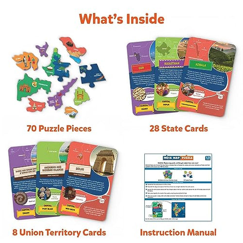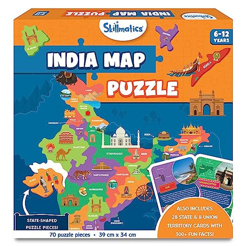 Skillmatics India Map Puzzle - 70 Pieces, Educational Toy for Learning 300+ Facts About India