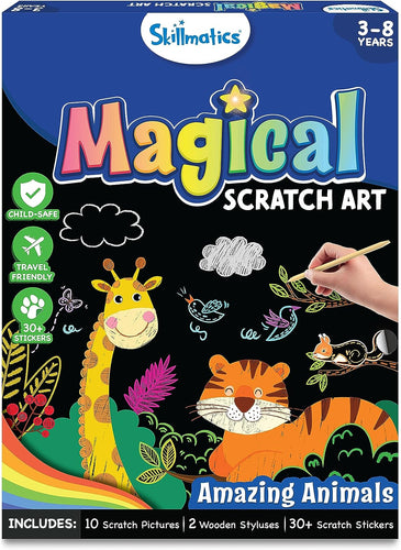 Skillmatics Magical Scratch Art Book for Kids - Animals, Craft Kits, DIY Activity & Stickers