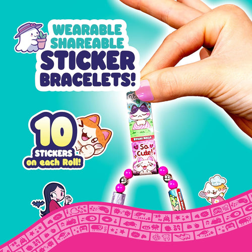 ALL-NEW PENDANT FUNCTIONALITY: Each character pendant can hold a Sticki Roll and dispense stickers with a pull-and-twist! Peel, stick, and wear your favourite designs anytime.