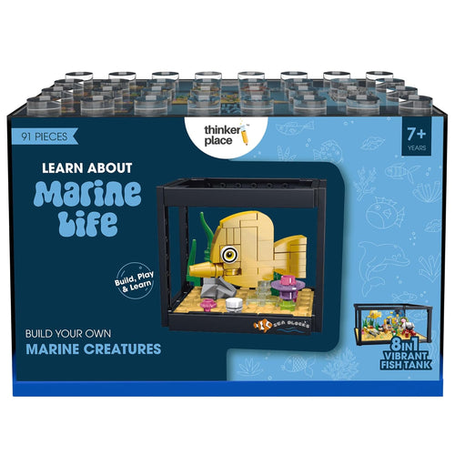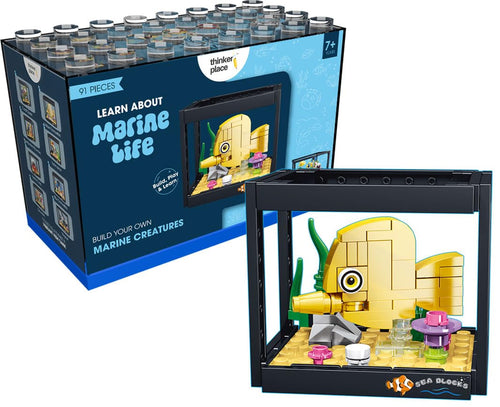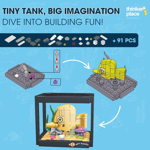 ThinkerPlace 8-in-1 Dream Ocean Fish Tank Golden Damselfish (91 Pieces) | Learn About Marine Life | Building Block Set for Kids Age 6+