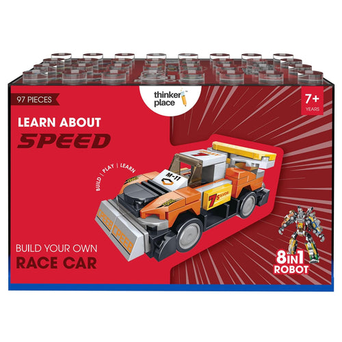 ThinkerPlace 8-in-1 Super Racing Car Neon (97 Pieces) | Learn About Speed | Building Block Set for Kids Age 6+