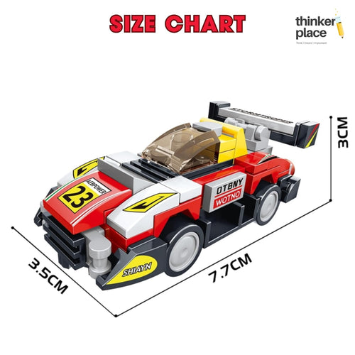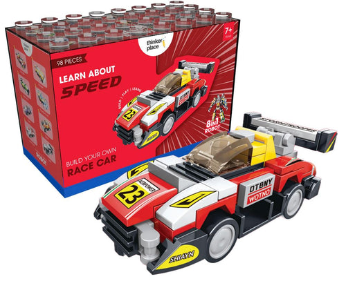 ThinkerPlace 8-in-1 Super Racing Car Red Star (98 Pieces) | Learn About Speed | Building Block Set for Kids Age 6+