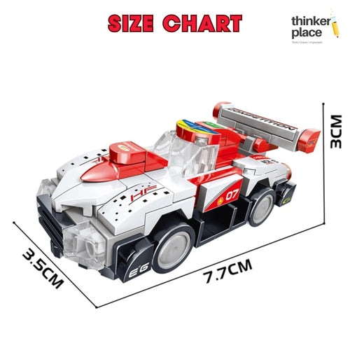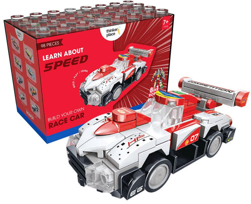 ThinkerPlace 8-in-1 Super Racing Car White Star (98 Pieces) | Learn About Speed | Building Block Set for Kids Age 6+