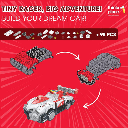 Notify me when ThinkerPlace 8-in-1 Super Racing Car White Star (98 Pieces) | Learn About Speed | Building Block Set for Kids Age 6+ - Default Title becomes available.