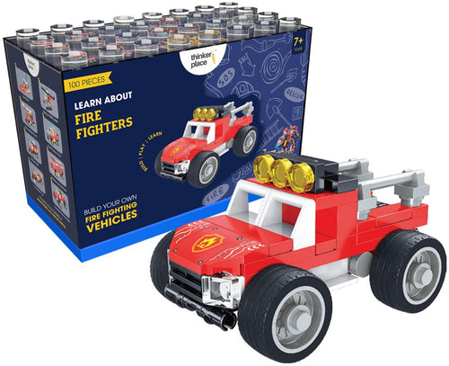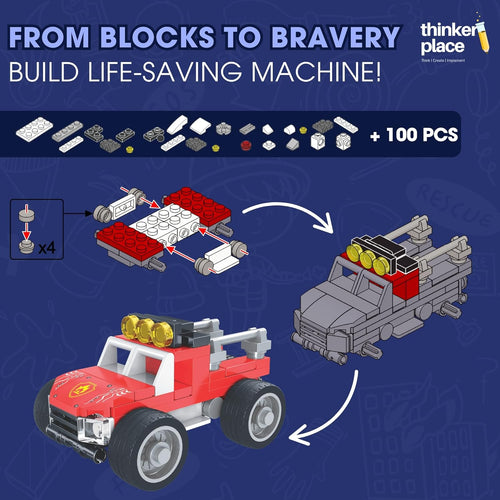 ThinkerPlace 8-in-2 Fire Vanguard Fire Off-Road Vehicle (100 Pieces) | Learn About Fire Fighters | Building Block Set for Kids Age 6+ | STEM Educational Toy