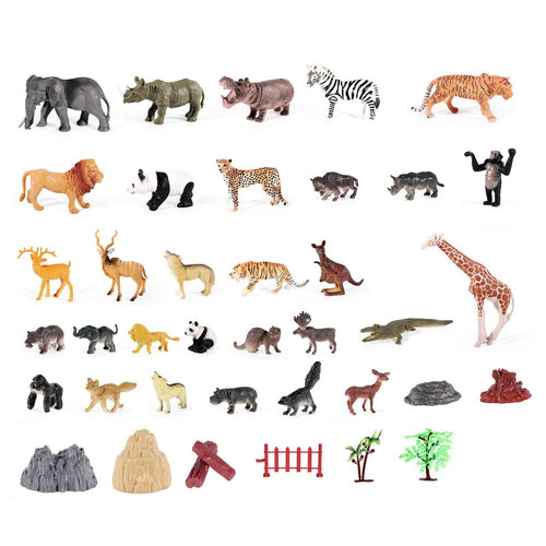 Knick Knack Animal Plastic Toy Figure Set Comes with 2 pcs Map | Collectible Animals Figures in Egg-Shaped Storage for Kids 3+ Years (Wild Animal 50 pcs)