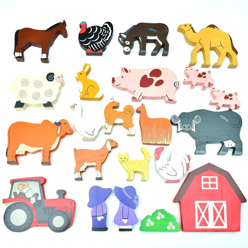 - SET CONTENTS: Collection features multiple hand-painted wooden animal figures suitable for children aged 3 years and above