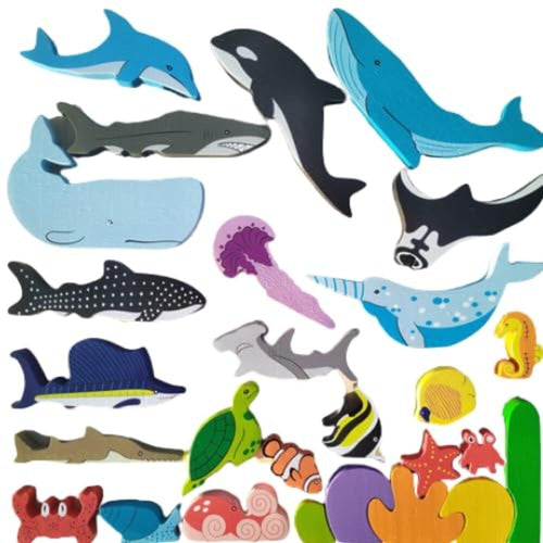 Knick Knack Wooden Animal Set, Educational Pre-School Toys 3+ Year Old Boys, Girls (sea Animal)