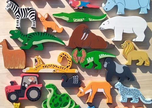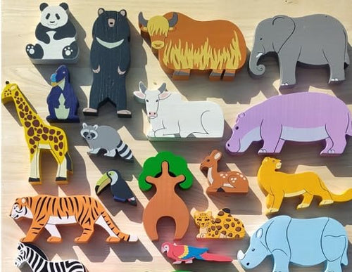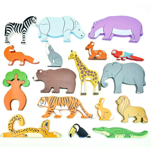 - EDUCATIONAL VALUE: Set includes various wooden animal figures designed to enhance children's recognition, imagination, and fine motor skills